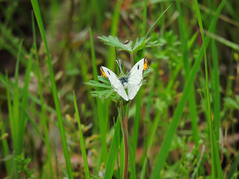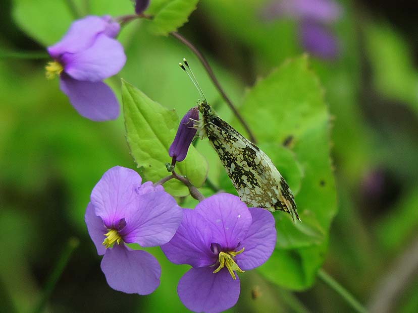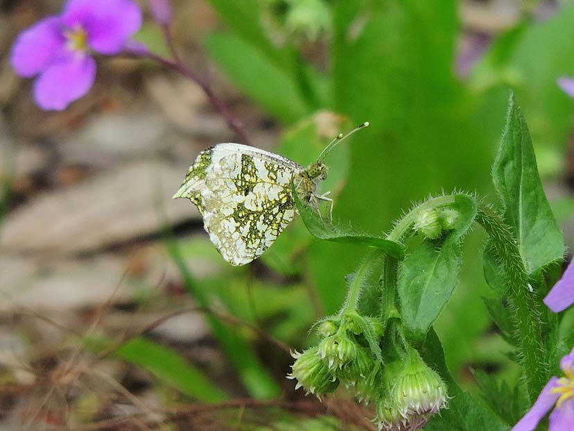 4月11日 林道の入り口付近に ツマキチョウ が居ました。 この ツマキチョウ は、飛び続けることはなく、近くの花に移動していました。