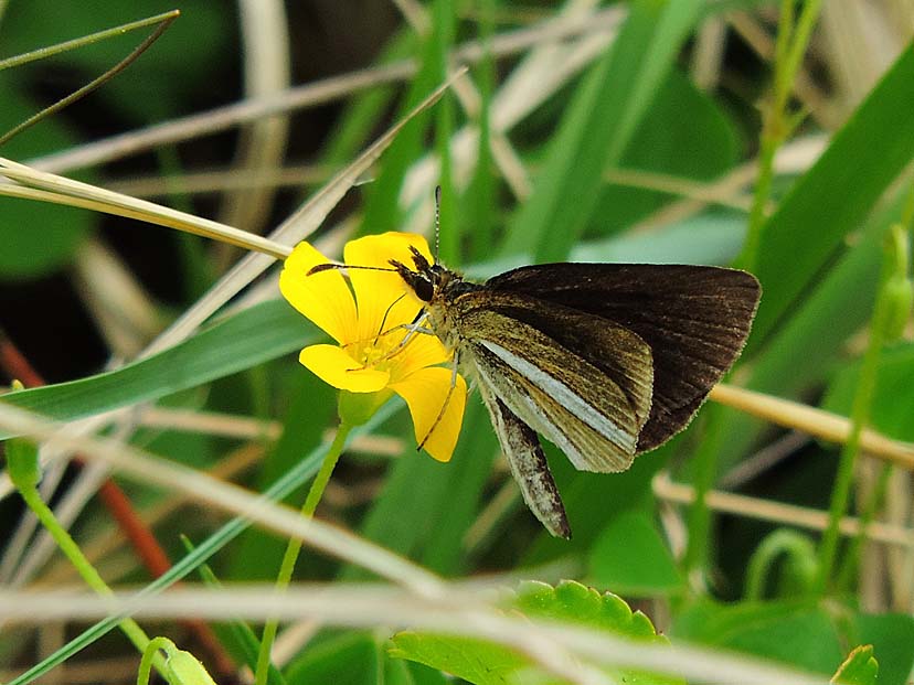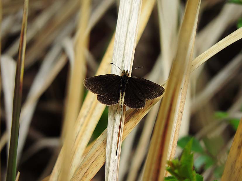 4月14日 太陽が顔を出すと ギンイチモンジセセリ は、飛び続けて止まってくれません。 それを、大きなエノキの下で待っていると、エノキの小さな緑色の実が風にゆられて落ちて来ます。 約10日前に比べると ギンイチモンジセセリ の数が増えて来ました。 また、キバネツノトンボも数匹見られました。