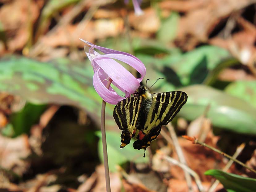 4月12日 午後からは少し離れた場所に移動しました。 こちらのカタクリの花は、きれいな時期で広範囲に咲いています。 ギフチョウ が飛んで来てくれました。