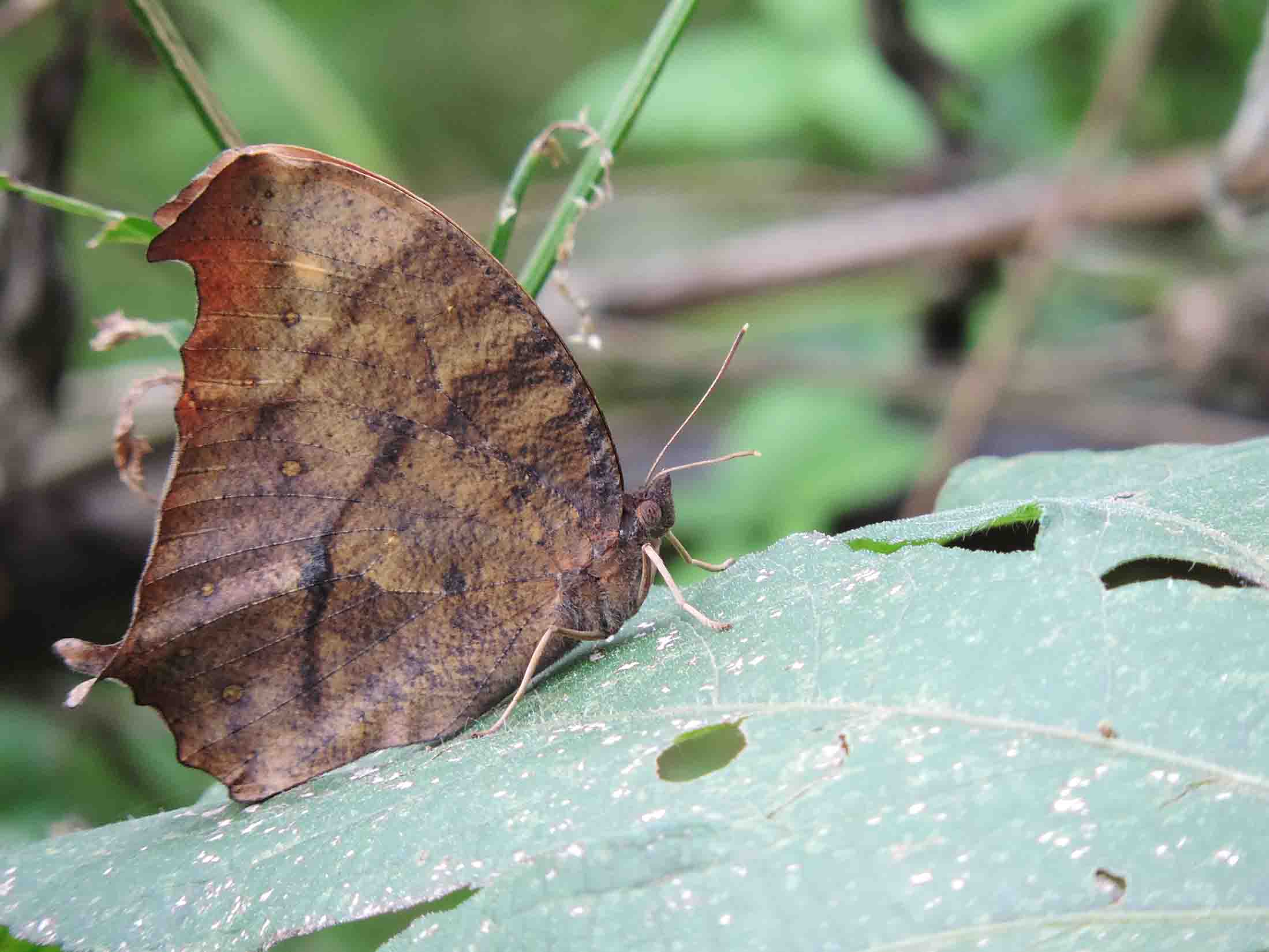 ジュズダマが生えているところに着くと、やや大きめの蝶がフワフワと飛び出しました。良く見ると、クロコノマチョウ でした。更に、周りを探すと、クロコノマチョウが下草に止まっています。時々、太陽が照ってきたので、羽を開いてくれるのを待ちましたが、一度も開いてくれませんでした。しかし、ここで、沢山のクロコノマチョウを見ることが出来、感激しました。