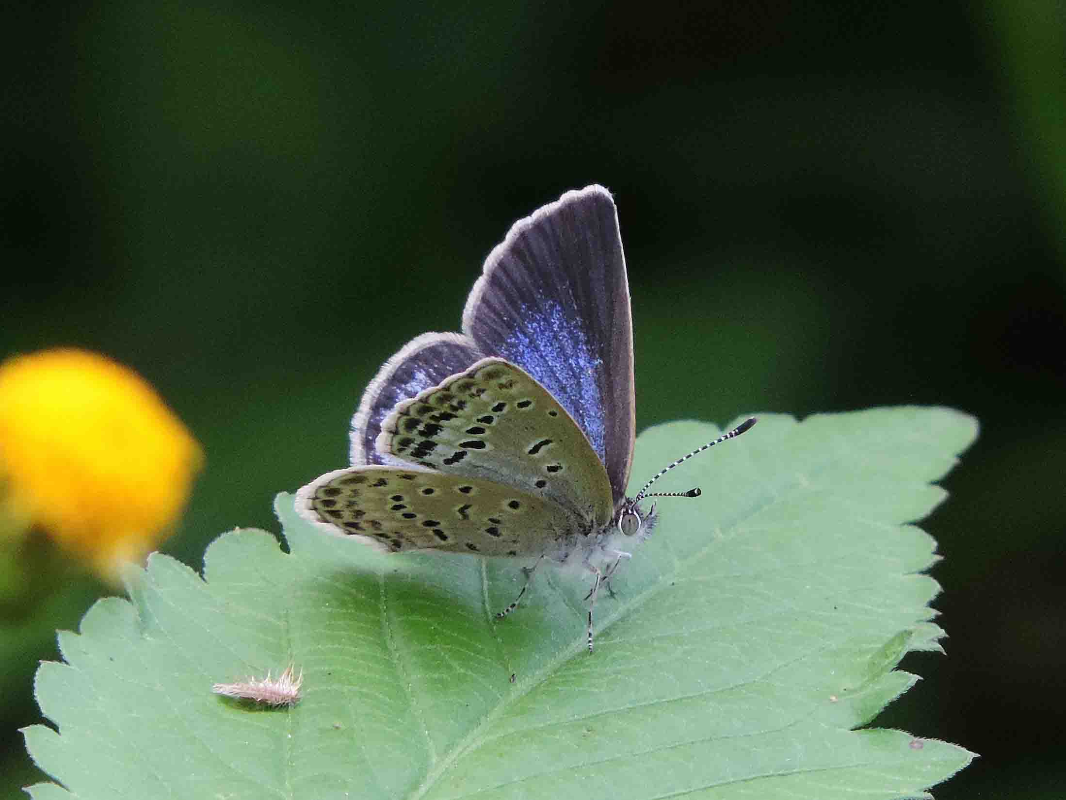 羽の表、前翅の鱗粉が鮮やかなブルーの色をしていました。