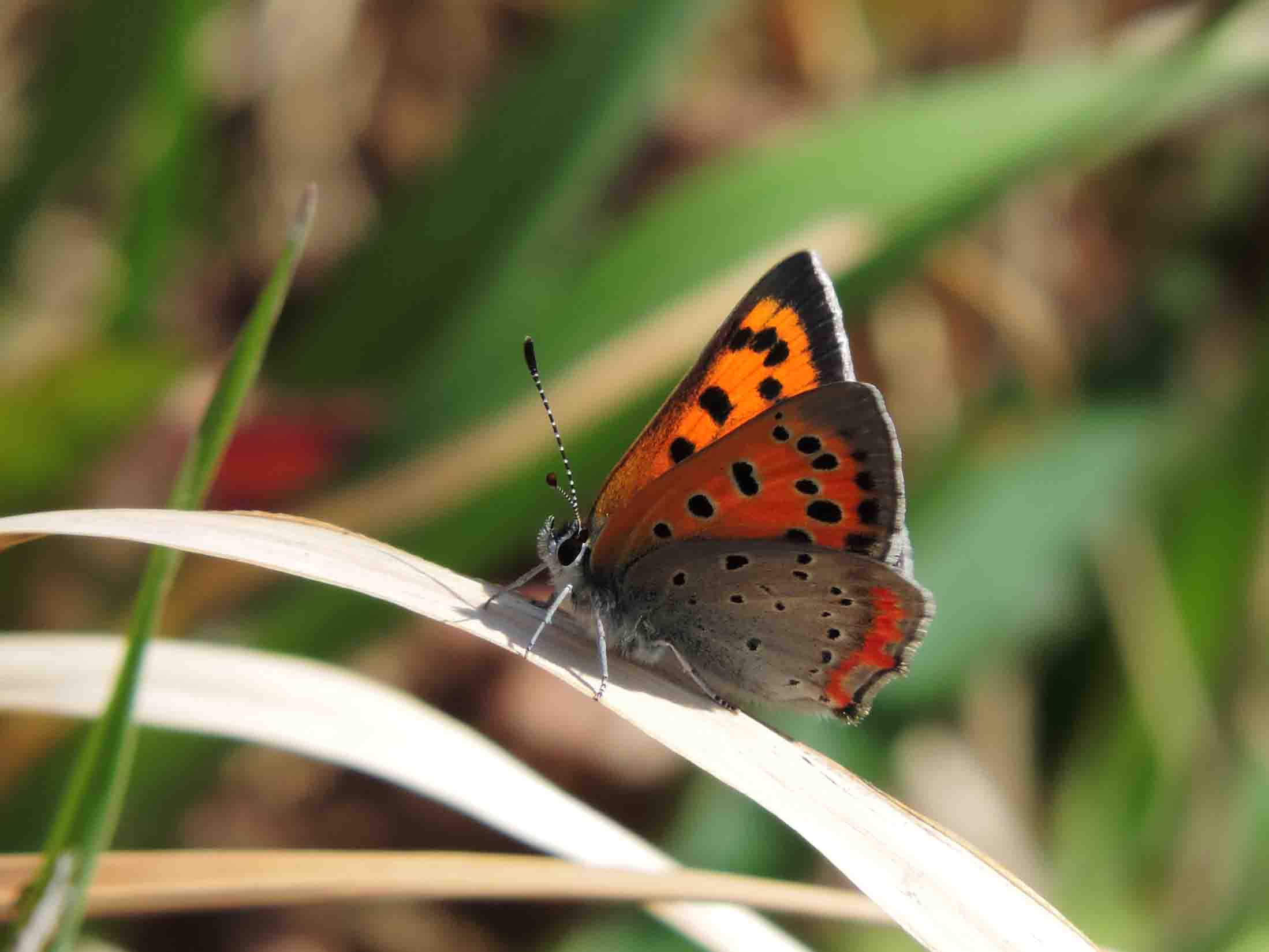 林の中を歩いても蝶が見当たらないので、土手に行きました。しかし、土手でも思ったように蝶は見つかりませんでした。そして、やっと見つけた蝶は ベニシジミ でした。ベニシジミ は、全部で3頭居ましたが、蝶の数が多くなるのはもう少しの辛抱のような気がしました。