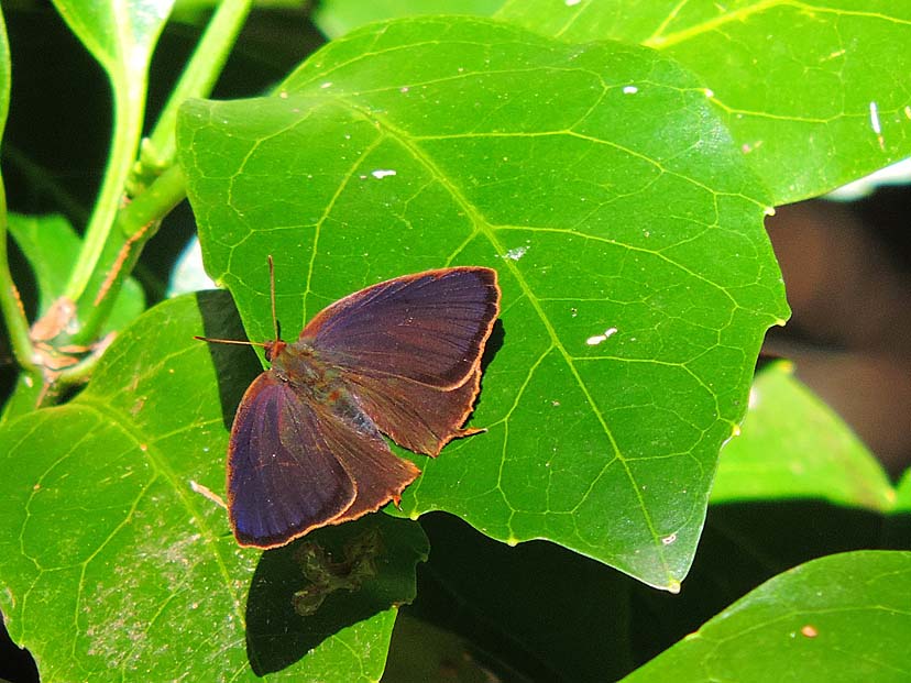12月2日 今、この林では、ムラサキシジミと ムラサキツバメ が暖かい太陽を求めて集まってくれます。特にここの場所と、もう一箇所で多く見られます。 ムラサキツバメ は、ムラサキシジミより少し大きく飛び方も速く感じます。