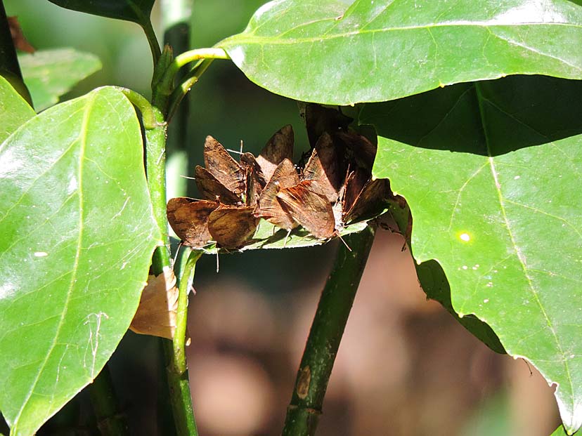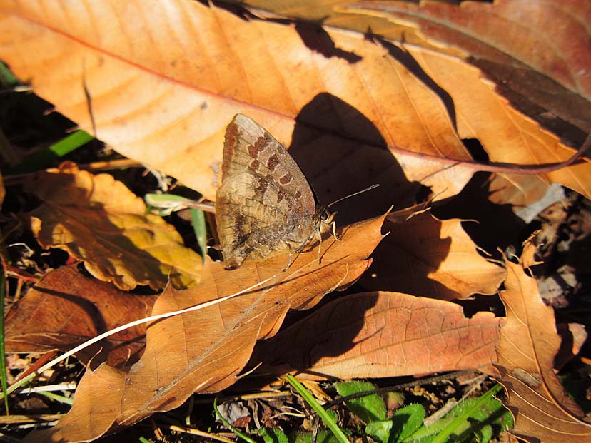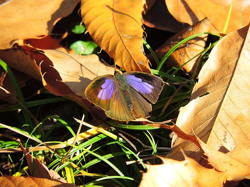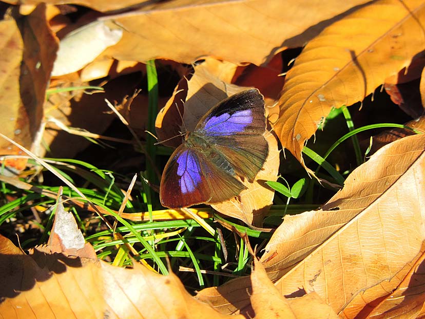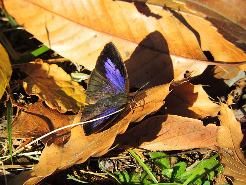 11月30日 遊歩道には、落ち葉が積もって歩くとカサカサ音を立てます。 そんな落ち葉の上で ムラサキツバメ を見つけました。 更に進むと、今年も ムラサキツバメ の塒(ねぐら)がありました。
