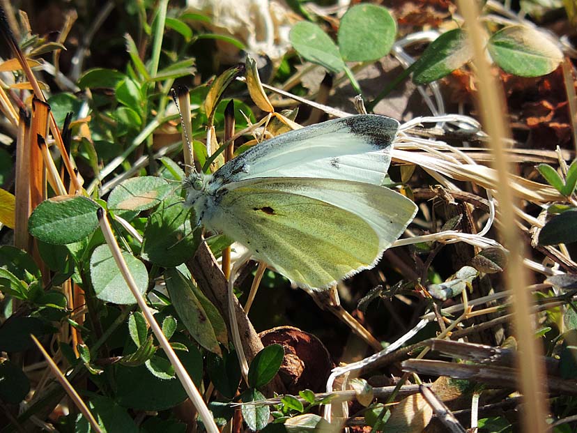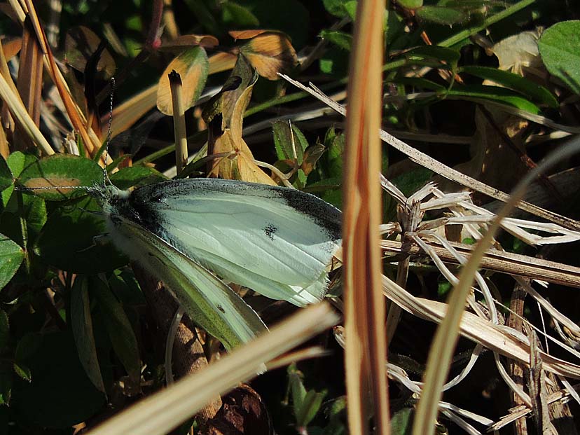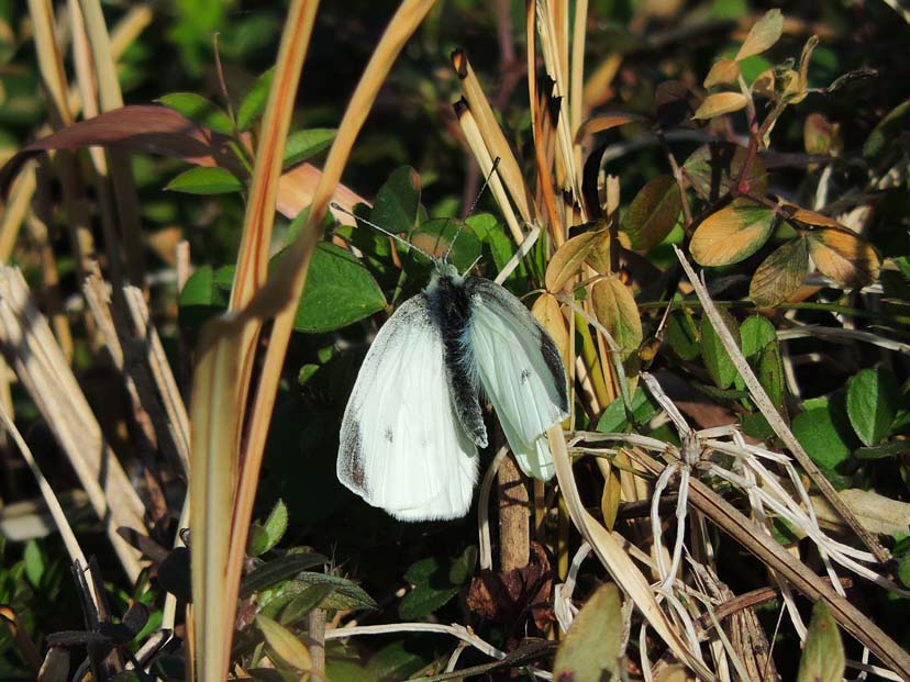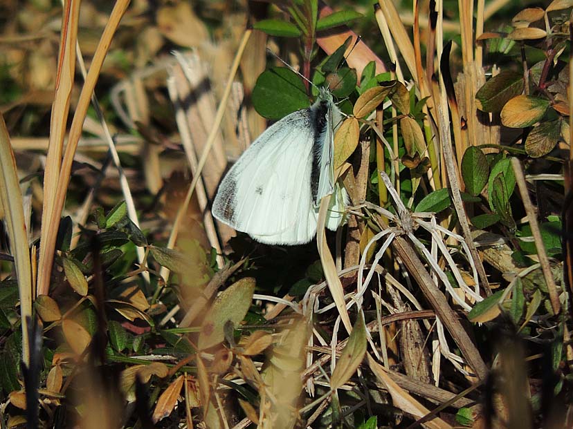 2月22日 良い天気で風弱くとても暖かい日です。 用水路の土手に行きました。着くと、モンキチョウが3~4頭飛んでいました。 そして、 モンシロチョウ も1頭居ました。