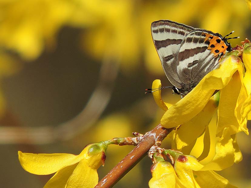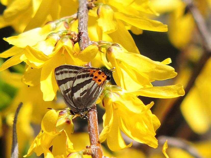トラフシジミ(埼玉県中部) 2026-03-26 by nagu·0件のコメント 3月24日 お昼頃にアセビの花に戻ると トラフシジミ が現れたようで、数人がカメラを向けています。 トラフシジミ は、アセビの葉の上で留まっています。 その後、レンギョウの花や、ユキヤナギの花にも現れました。