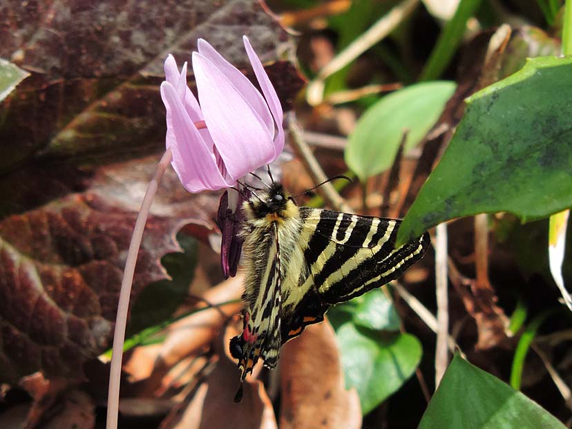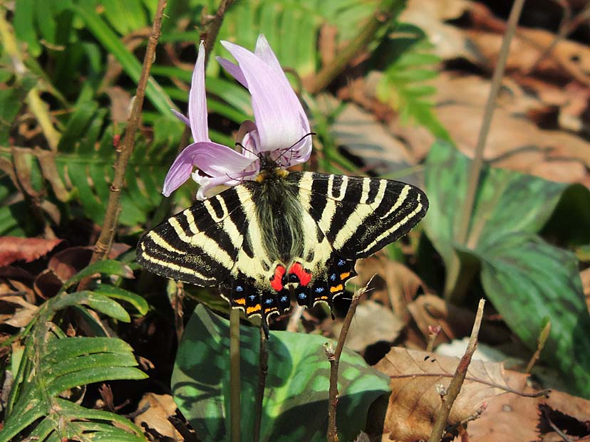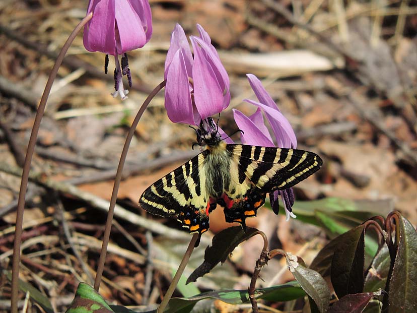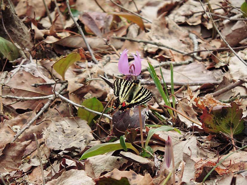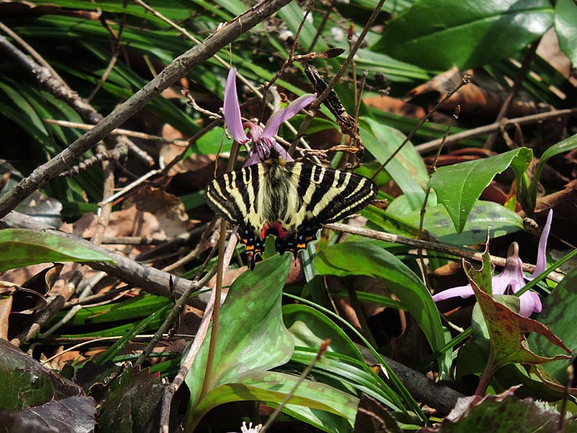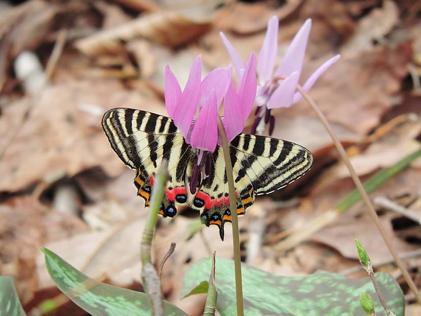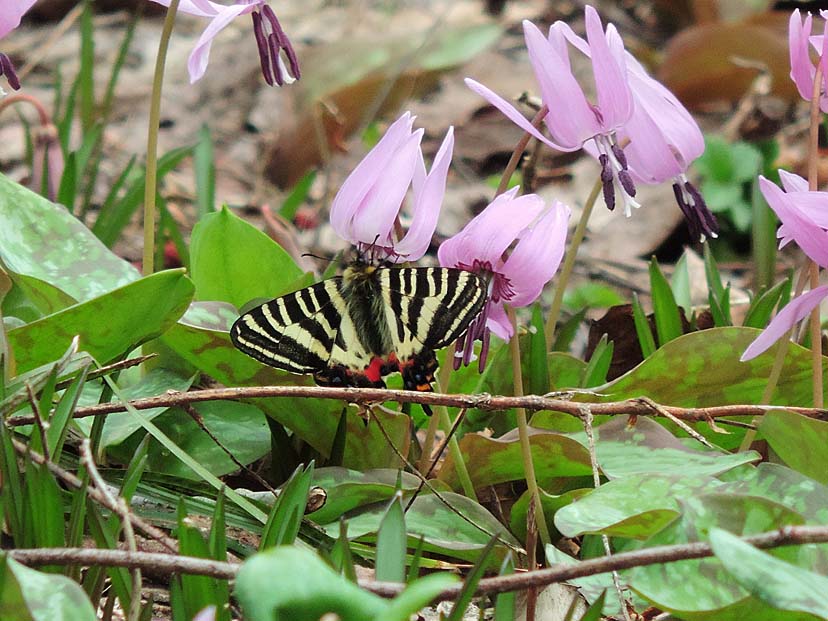 4月3日 午前中は、少し雲が出ましたが、その後は風もなく良い天気になりました。 カタクリの花もきれいに咲いています。 その花に ギフチョウ が飛んできます。 その数も思ったより多く、楽しく撮影が出来ました。 この場所まで車を運転していただいた Y.Sさんに感謝です。