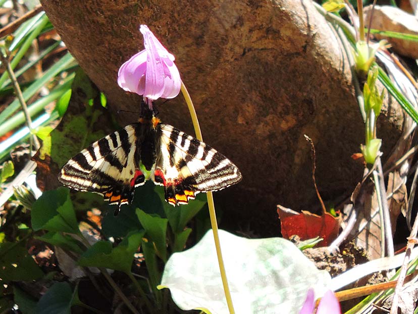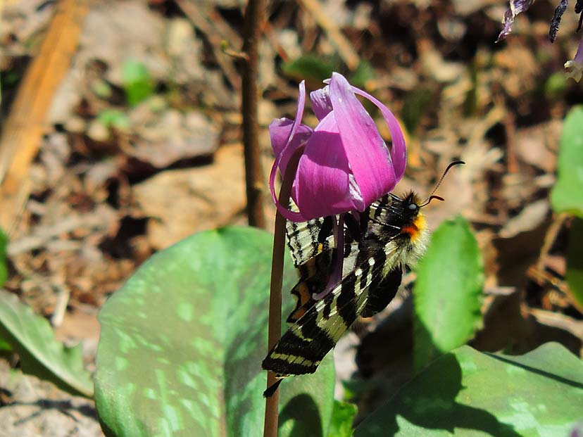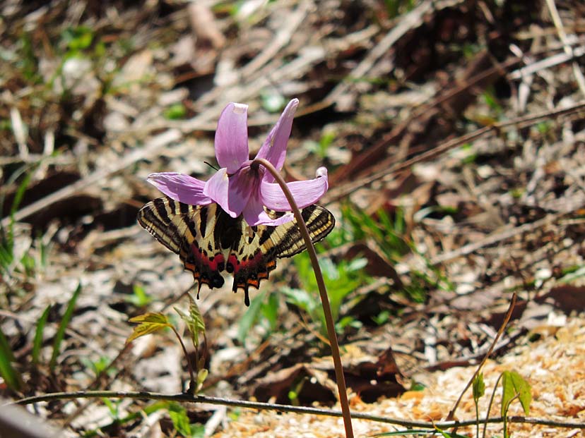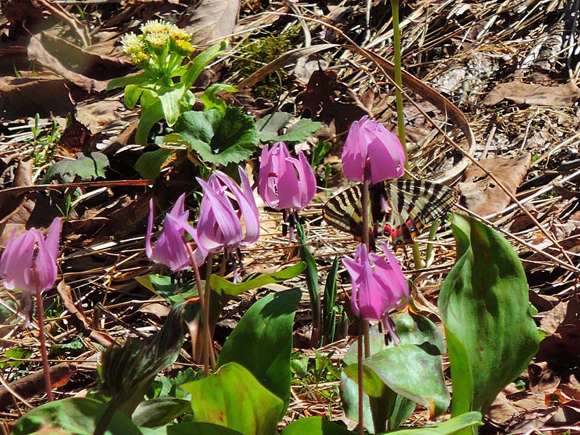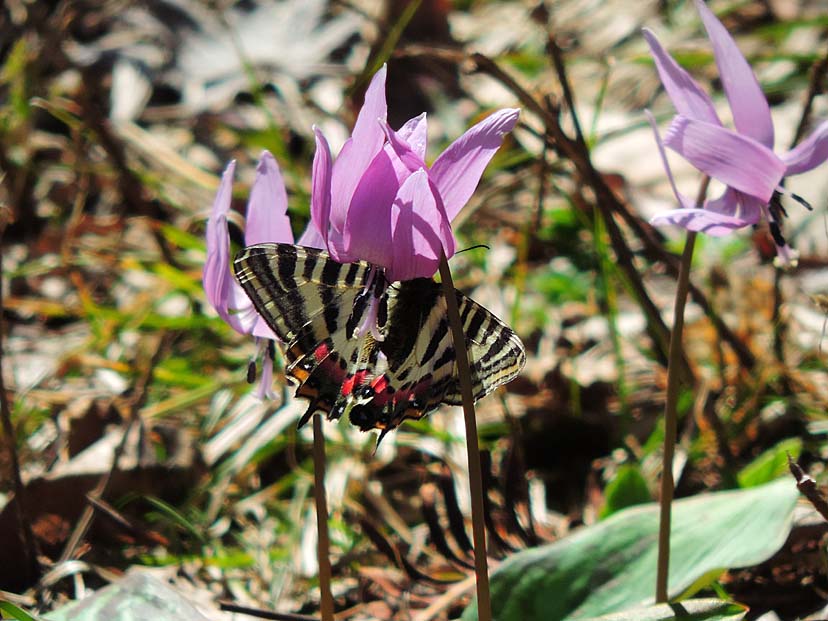 ギフチョウ(新潟県中部)その1 2026-04-14 by nagu·0件のコメント 4月12日 再度、 ギフチョウ を見に行ける機会を頂きました。 前回から10日近く過ぎたので、カタクリの花は少なく寂しい感じです。 それでも、 ギフチョウ は出て来てくれました。