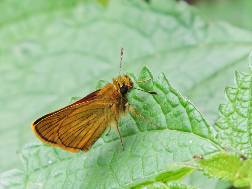 6月27日 群馬県中部の高原に行きました。明るく開けた疎林の草原で、ヒメキマダラセセリ がすばやく飛びました。下草に止まると、明るい茶色の色が目立ちます。今、ここでセセリチョウは、この ヒメキマダラセセリ が多く見られます。